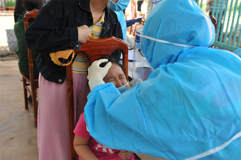Lấy mẫu xét nghiệm Covid-19 cho người dân ở Đắk Lắk