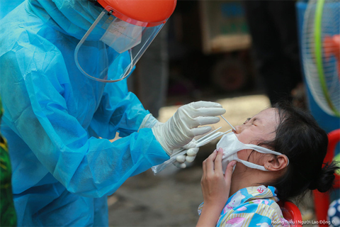 Nhân viên y tế lấy mẫu tại một khu dân cư có ca nghi mắc Covid-19 ở quận 1, TP HCM - Ảnh: Hoàng Triều