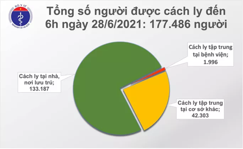Tổng số người tiếp xúc gần và nhập cảnh từ vùng dịch đang được theo dõi sức khỏe (cách ly): 177.486, trong đó cách ly tập trung tại bệnh viện: 1.996; cách ly tập trung tại cơ sở khác: 42.303 và cách ly tại nhà, nơi lưu trú: 133.187