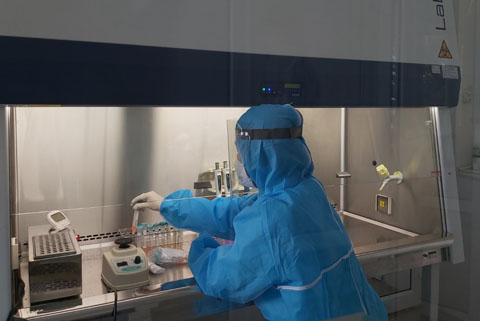 Nhân viên Khoa Xét nghiệm chẩn đoán hình ảnh, thăm dò chức năng, Trung tâm Kiểm soát bệnh tật tỉnh miệt mài trong labo làm xét nghiệm SARS-CoV-2