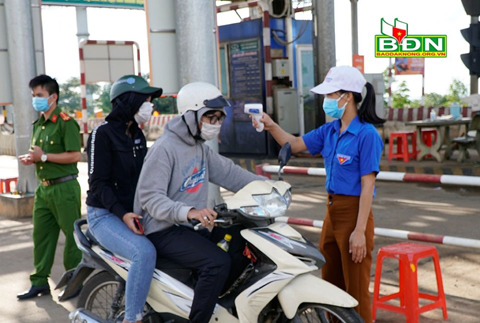 Kiểm tra thân nhiệt tại Chốt kiểm soát dịch Covid-19 tại xã Đắk Ru (Đắk R'lấp)