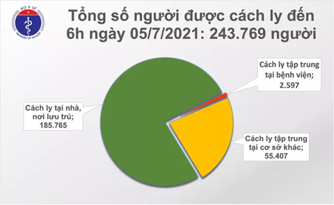 Tổng số người tiếp xúc gần và nhập cảnh từ vùng dịch đang được theo dõi sức khỏe (cách ly): 243.769, trong đó cách ly tập trung tại bệnh viện: 2.597; cách ly tập trung tại cơ sở khác: 55.407 và cách ly tại nhà, nơi lưu trú: 185.765