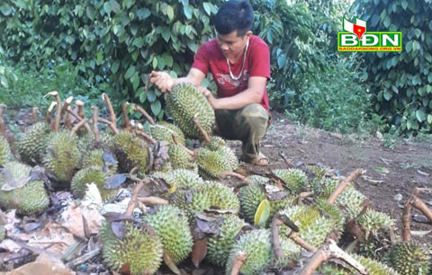 Trong đó, vườn sầu riêng 700 cây của gia đình ông Hải ở thôn 1 bị rụng quả, ước tính thiệt hại khoảng gần 3 tỷ đồng.