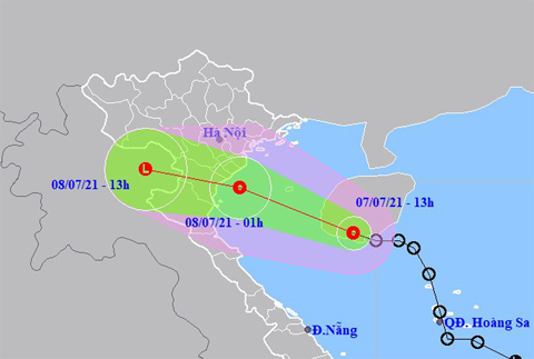 Dự báo trong 12 giờ tới, áp thấp nhiệt đới di chuyển theo hướng Tây Tây Bắc, mỗi giờ đi được khoảng 25 km, chiều nay 7-7 đi vào Vịnh Bắc Bộ và có khả năng mạnh thêm. Đến 1 giờ ngày 8-7, vị trí tâm áp thấp nhiệt đới ở khoảng 19,8 độ Vĩ Bắc; 106,4 độ Kinh Đông, ngay trên vùng biển các tỉnh từ Thái Bình đến Nghệ An. Sức gió mạnh nhất vùng gần tâm áp thấp nhiệt đới mạnh cấp 6-7 (39-61 km/giờ), giật cấp 9.
