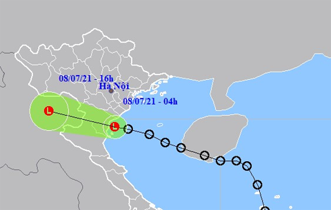 Dự báo trong 12 giờ tới, vùng áp thấp này di chuyển theo hướng Tây Tây Bắc, mỗi giờ đi được khoảng 25 km, đi sâu vào đất liền. Đến 16 giờ ngày 8-7, vị trí trung tâm vùng áp thấp ở khoảng 20,3 độ Vĩ Bắc; 103,5 độ Kinh Đông, trên khu vực Thượng Lào.