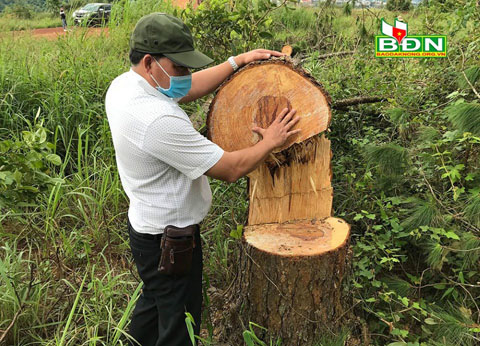 Ngày 7/7, ông Nguyễn Phước Thiện, Chủ tịch UBND thị trấn Đức An, huyện Đắk Song (Đắk Nông), cho biết: Cơ quan chức năng đang điều tra vụ cưa trộm thông vừa xảy ra trên địa bàn.
