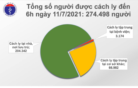 Tổng số người tiếp xúc gần và nhập cảnh từ vùng dịch đang được theo dõi sức khỏe (cách ly): 274.498, trong đó cách ly tập trung tại bệnh viện: 3.174, cách ly tập trung tại cơ sở khác là 66.982 và cách ly tại nhà, nơi lưu trú: 204.342.