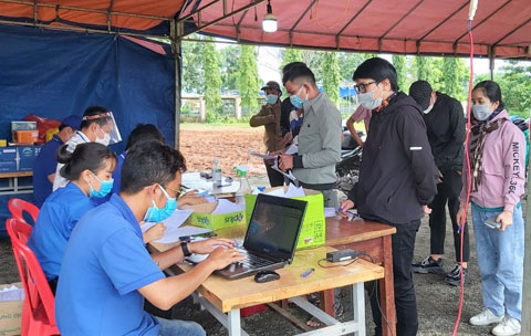 Người dân từ TP. Hồ Chí Minh về Đắk Lắk thực hiện khai báo y tế tại Chốt kiểm soát dịch COVID-19 trên quốc lộ 14 (thuộc xã Hòa Phú, TP. Buôn Ma Thuột).