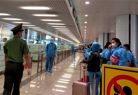 Hành khách trên chuyến bay quốc tế chuẩn bị nhập cảnh tại sân bay Nội Bài (Hà Nội)