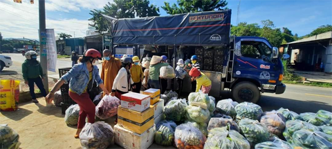 Người dân huyện Lắk đưa rau lên xe chuyển về nơi tập kết.