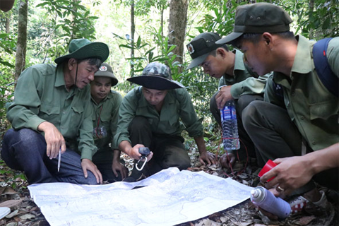 Nhân viên bảo vệ rừng Công ty TNHH MTV Lâm nghiệp Krông Bông kiểm tra địa điểm tuần tra bảo vệ rừng