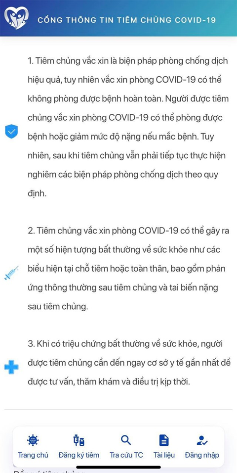 Phó Cục trưởng Cục Công nghệ thông tin của Bộ Y tế nhấn mạnh: Không phải cứ đăng ký trước là được tiêm trước. Việc đăng ký tiêm qua mạng chỉ là hình thức giúp người dân không phải đến cơ sở tiêm chủng, các thông tin khai báo được tiếp nhận nhanh nhất, tránh thất lạc, trùng lặp thông tin. Trên hệ thống sẽ không thể hiện việc đăng ký trước sẽ được tiêm trước.