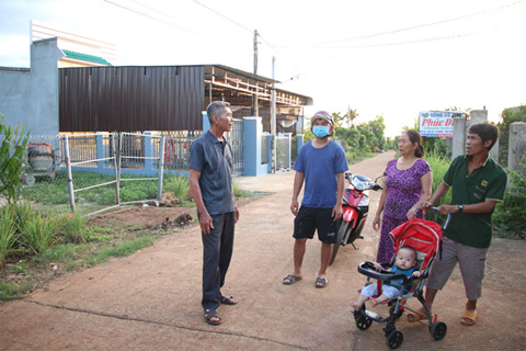 Ông Đặng Hào, Trưởng thôn 15, xã Ea Bar (bìa trái) cùng người dân trên con đường bê tông hóa nhờ sức dân