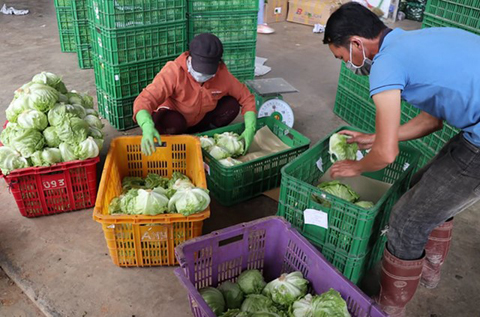 Người dân Đà Lạt phân loại, đóng gói rau xanh để đưa về TP HCM. Ảnh: Khánh Hương.