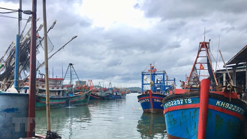 Tàu thuyền các tỉnh neo đậu tránh trú bão. (Ảnh: Thanh Vân/TTXVN).
