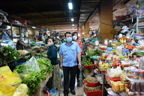 Ban Quản lý chợ Buôn Ma Thuột kiểm tra hoạt động mua bán và việc thực hiện khuyến cáo 5K của các tiểu thương