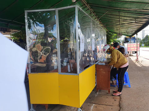 Người dân khai báo y tế tại 1 chốt kiểm soát dịch bệnh trên đường Hồ Chí Minh đoạn qua tỉnh Đắk Nông