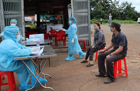 Tiểu thương chợ đầu mối Tân Hòa, phường Tân Hòa (TP. Buôn Ma Thuột) chờ lấy mẫu xét nghiệm SARS-CoV-2