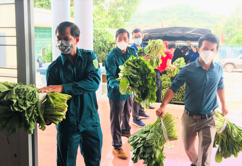 Các tình nguyện viên vận chuyển rau củ và nhu yếu phẩm để hỗ trợ người dân.