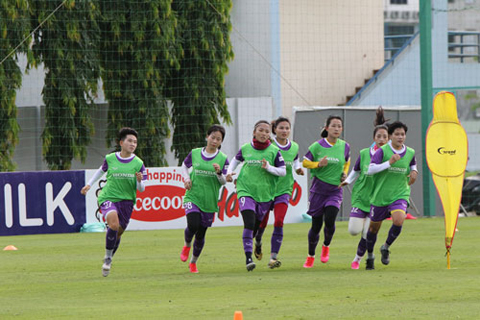 Các nữ tuyển thủ Việt Nam tập luyện tại Trung tâm Đào tạo bóng đá trẻ Việt Nam Ảnh: VFF