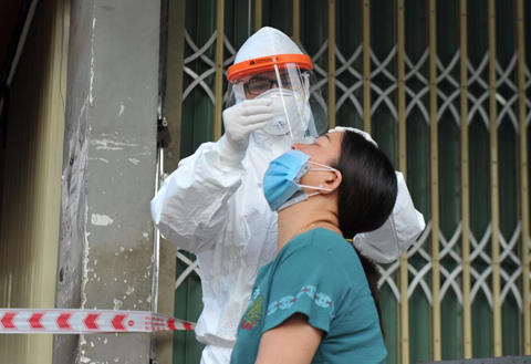Nhân viên y tế lấy mẫu xét nghiệm SARS-CoV-2 cho người dân tại khu vực đường Ama Jhao (phường Tân Lập, TP. Buôn Ma Thuột).