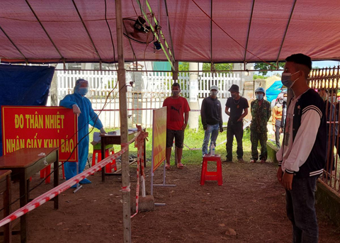 Người dân khai báo y tế điện tử qua hệ thống camera nhận diện khuôn mặt tại Chốt kiểm soát phòng, chống dịch COVID-19 trên Quốc lộ 14, đoạn qua xã Hòa Phú (TP. Buôn Ma Thuột).