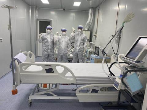 Phòng điểu trị áp lực âm được trang bị đầy đủ máy móc.