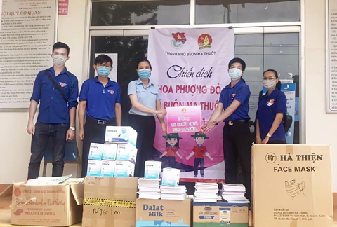 Thành Đoàn, Hội đồng Đội TP. Buôn Ma Thuột gửi tặng các phần quà cho học sinh khó khăn tại xã Hòa Thuận