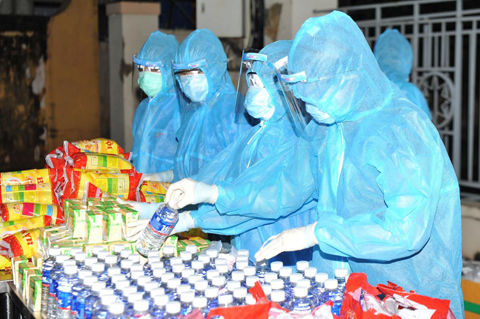 Đoàn viên, thanh niên chuẩn bị bữa ăn nhẹ hỗ trợ công dân của tỉnh tạm trú ở tỉnh Bình Dương về thực hiện cách ly tập trung phòng, chống dịch