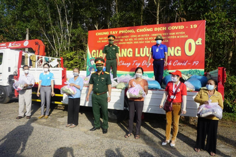 “Gian hàng 0 đồng” do Ban CHQS huyện M’Drắk phối hợp với Ủy ban MTTQ Việt Nam huyện, các cơ quan, đơn vị, đoàn thể thực hiện đã “chở” nhiều yêu thương đến người dân có hoàn cảnh khó khăn bị ảnh hưởng bởi đại dịch COVID-19 trên địa bàn huyện M’Drắk.