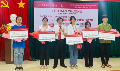 Lãnh đạo Agribank Đắk Lắk trao thưởng cho sinh viên trong chương trình “Agribank đồng hành cùng tân sinh viên 2020”