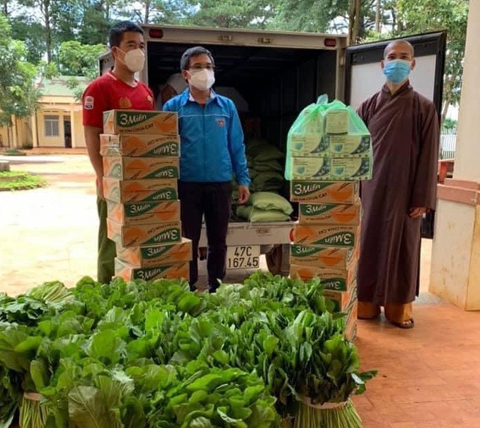 Các tổ chức, đoàn thể tặng nhu yếu phẩm cho khu dân cư bị phong tỏa ở huyện Krông Búk.