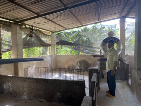 Ông Nguyễn Ngọc Đương ở thôn Hiệp Hòa (xã Quảng Hiệp, huyện Cư M’gar) bên chuồng lợn vừa có lợn bị mắc bệnh DTLCP phải tiêu hủy. Ảnh: TD