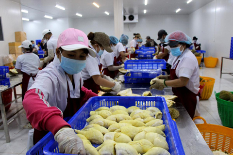 Chế biến sầu riêng tại Công ty Cổ phần Thương mại xuất nhập khẩu Dũng Thái Sơn (xã Ea Kênh).