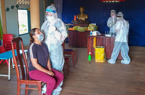 Lực lượng chức năng tiến hành test nhanh cho người dân buôn Bia (xã Dliê Yang) vào ngày 1-9.