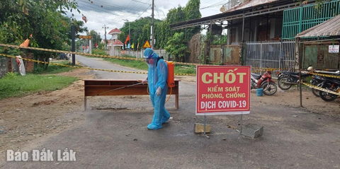 Phun khử khuẩn tại Chốt phong tỏa ở xã Yang Tao (huyện Lắk) vào cuối tháng 8-2021