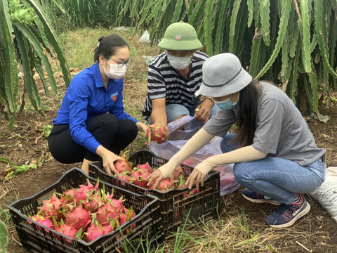 Các bạn trẻ Đoàn phường Ea Tam đến tận vườn hái thanh long để mang đi tặng (ảnh chụp trước thời điểm thực hiện giãn cách xã hội).