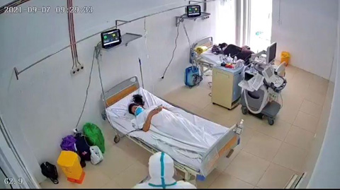 Điều trị bệnh nhân COVID-19 tại Bệnh viện Đa khoa vùng Tây Nguyên. (Ảnh: Tú Anh chụp qua camera).