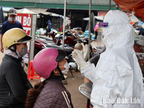 Lực lượng y tế lấy mẫu xét nghiệm SARS-CoV-2 cho người dân tại chợ đầu mối Tân Hòa, phường Tân Hòa (TP. Buôn Ma Thuột).