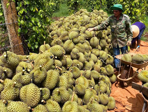 Nông dân Krông Pắc thu hoạch sầu riêng mùa vụ năm 2021.