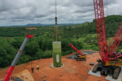 Một dự án điện gió tại huyện Ea H'leo đang thi công cột gió.