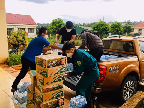 Cán bộ phường An Bình vận chuyển nhu yếu phẩm hỗ trợ người dân và các khu cách ly.