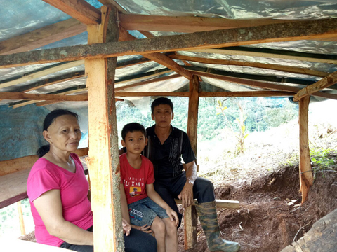 Gia đình ông Triệu Sinh Hương dựng lều bắt sóng 4G cho cháu học trực tuyến. Ảnh thầy Thủy cung cấp