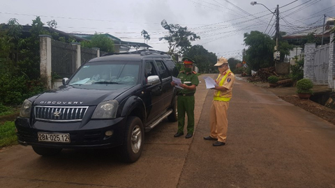 Lực lượng Công an thị xã Buôn Hồ kiểm tra việc đi lại của người dân khi địa phương đang thực hiện Chỉ thị 16. (Ảnh minh họa)