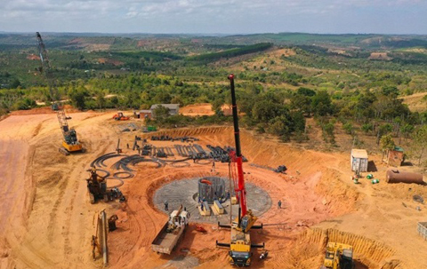 Thi công trụ móng một dự án điện gió tại xã Ea Nam, huyện Ea H'leo