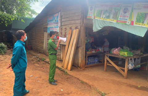 Ngoài nỗ lực ngăn chặn dịch bệnh từ ngoài vào, chính quyền xã còn tăng cường phòng, chống dịch trong địa bàn. Là địa phương có tỷ lệ hộ nghèo khá cao, đời sống người dân còn thiếu thốn, đặc biệt tại vùng đồng bào Mông sinh sống, nhiều hộ chưa có điện sinh hoạt, thắp sáng, không đủ điều kiện để nghe phát thanh nên rất khó để tiếp nhận thông tin dịch bệnh. Do đó, hằng tuần, Ban Chỉ đạo phòng, chống dịch COVID-19 của xã đã cắt cử các thành viên thay nhau dùng loa cầm tay đến tại các thôn, buôn tuyên truyền, vận động bà con thực hiện nghiêm túc biện pháp phòng, chống dịch.