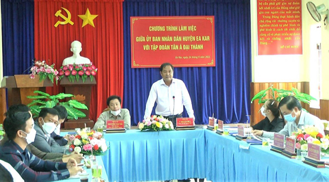 Phát biểu kết luận tại buổi làm việc, Tỉnh ủy viên, Bí thư Huyện ủy, Chủ tịch HĐND huyện Ea Kar Y Nhuân Byă khẳng định, dự án này sẽ góp phần tăng tỷ lệ đô thị hóa tại huyện Ea Kar và tạo nên diện mạo mới, hiện đại cho thị xã Ea Kar sau này. Chính vì vậy, Thường trực Huyện ủy ủng hộ và đề nghị UBND huyện chấp thuận chủ trương cho đơn vị tiếp tục nghiên cứu, lập quy hoạch dự án.
