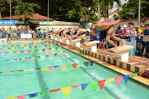 Các vận động viên tranh tài tại giải bơi khối tiểu học tỉnh năm 2020. Ảnh minh họa