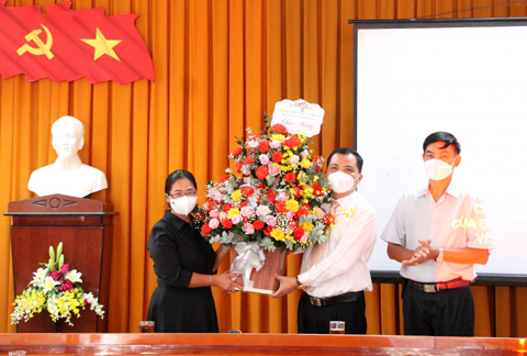 Lãnh đạo Ban Dân vận Tỉnh ủy tặng hoa chúc mừng đồng chí Nghiêm Văn Chuẩn.