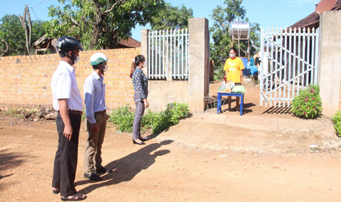 Ban Chỉ đạo phòng chống dịch COVID-19 thị trấn Buôn Trấp thăm hỏi, hỗ trợ nhu yếu phẩm cho người dân thực hiện cách ly y tế tại nhà.